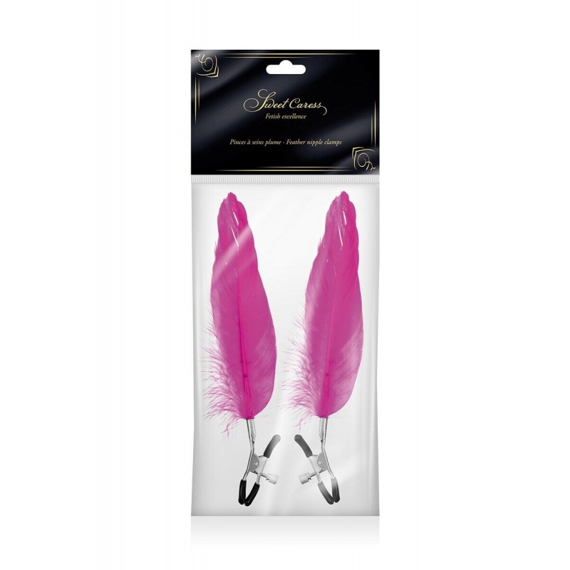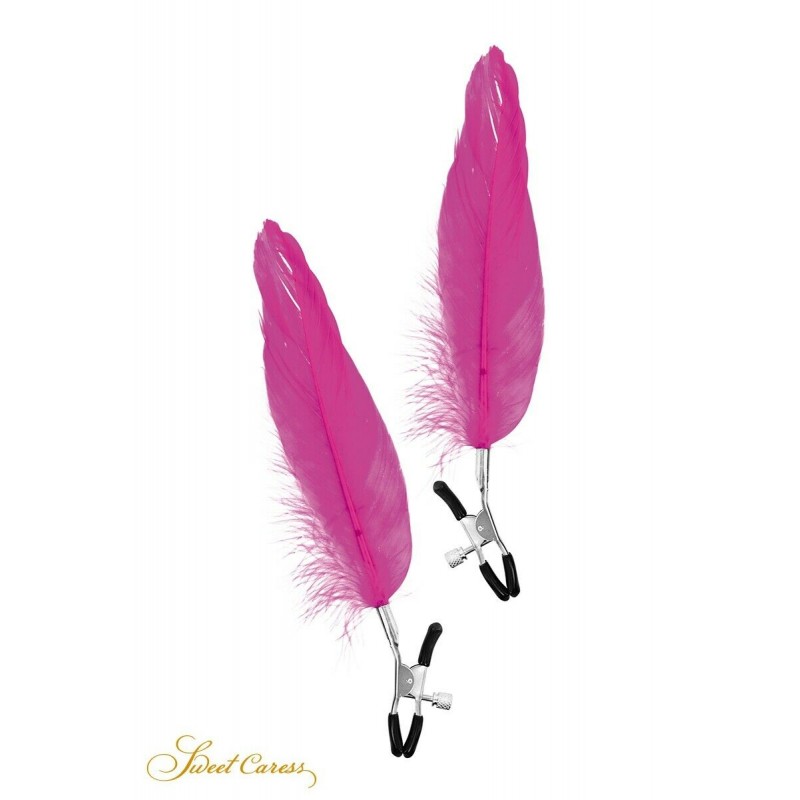 Pinces à tétons à pression réglable pour la stimulation des seins. La plume ornera la poitrine et viendra de temps à autre vous chatouiller lors de vos mouvements.