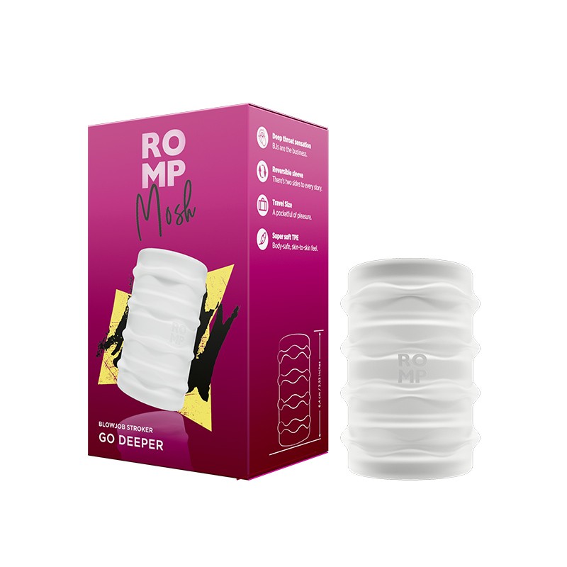 Le masturbateur ROMP Mosh est un masturbateur simple, accessible et extrêmement efficace. Oubliez la recharge USB, les fioritures vaginales et autres artifices. Le BlowJob Stroker de chez ROMP (faites pas les innocents, on sait que vous connaissez ce terme !) est un manchon réversible conçu pour intensifier la masturbation et reproduire l'agréable sensation d'une fellation.